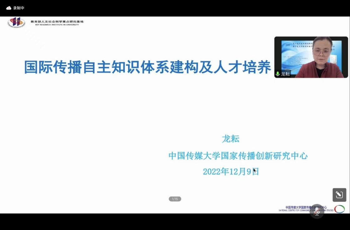 龙耘专场从体系建构方面具体介绍了“国际传播自主知识体系以及人才培养”,她认为国际传播学作为传播学的一个分支,从全民传播的角度,可能已经超过了新闻传播学学界或者业界的思考,已然成为一个国家战略。龙耘强调,近些年随着技术的发展、社会的转型,新闻传播学包括国际传播,出现了滞后于实践的情况,在这样一个新的时期,新闻传播亟待重新思考和建构传播的背后的价值理念,怎样去重新建构,怎样去阐释,怎样表达中国的故事,这是非常重要的。龙耘教授回顾了关于国际传播自改革开放以来人才培养的历程,分享了中国传媒大学国家舆情实验室、人类命运共同体研究院以及战略性的科研平台对人才培养计划带来的积极意义。