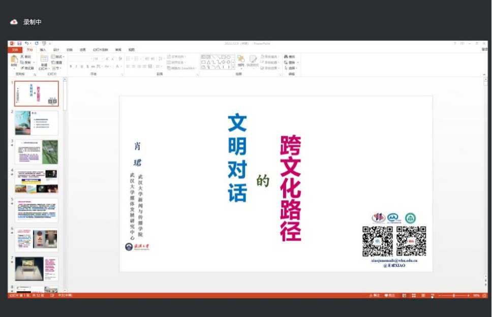 肖珺专场围绕“文明对话的跨文化路径探索”主题,主要从文明对话中的跨文化内涵、跨文化对话的理论源流、中国跨文化传播的创新实践、迈向互惠性理解的对话文明四个方面展开论述。她指出,当前,世界百年未有之大变局和新冠肺炎疫情全球大流行相互交织、彼此影响,国际格局演变深刻复杂。面向人际交往层面的种种冲突和伤害,具有不同价值观、文化背景的个体或群体急迫地需要以一种共享的、开放的传播观实现彼此间的协商和共存。跨文化传播中的互惠性理解努力基于生活事实与文化的动态发展进行对话式理解,在文化差异中形成互补性知识,使得人们在跨文化关系中不断地丰富自我、平衡自然和社会环境。