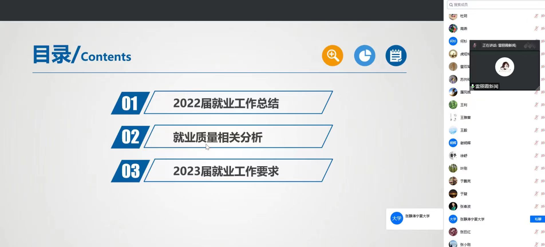2023届毕业生生源地分布及就业意向摸排情况进行了具体分析,对导师及毕业论文指导老师的就业帮扶工作进度进行了提醒。