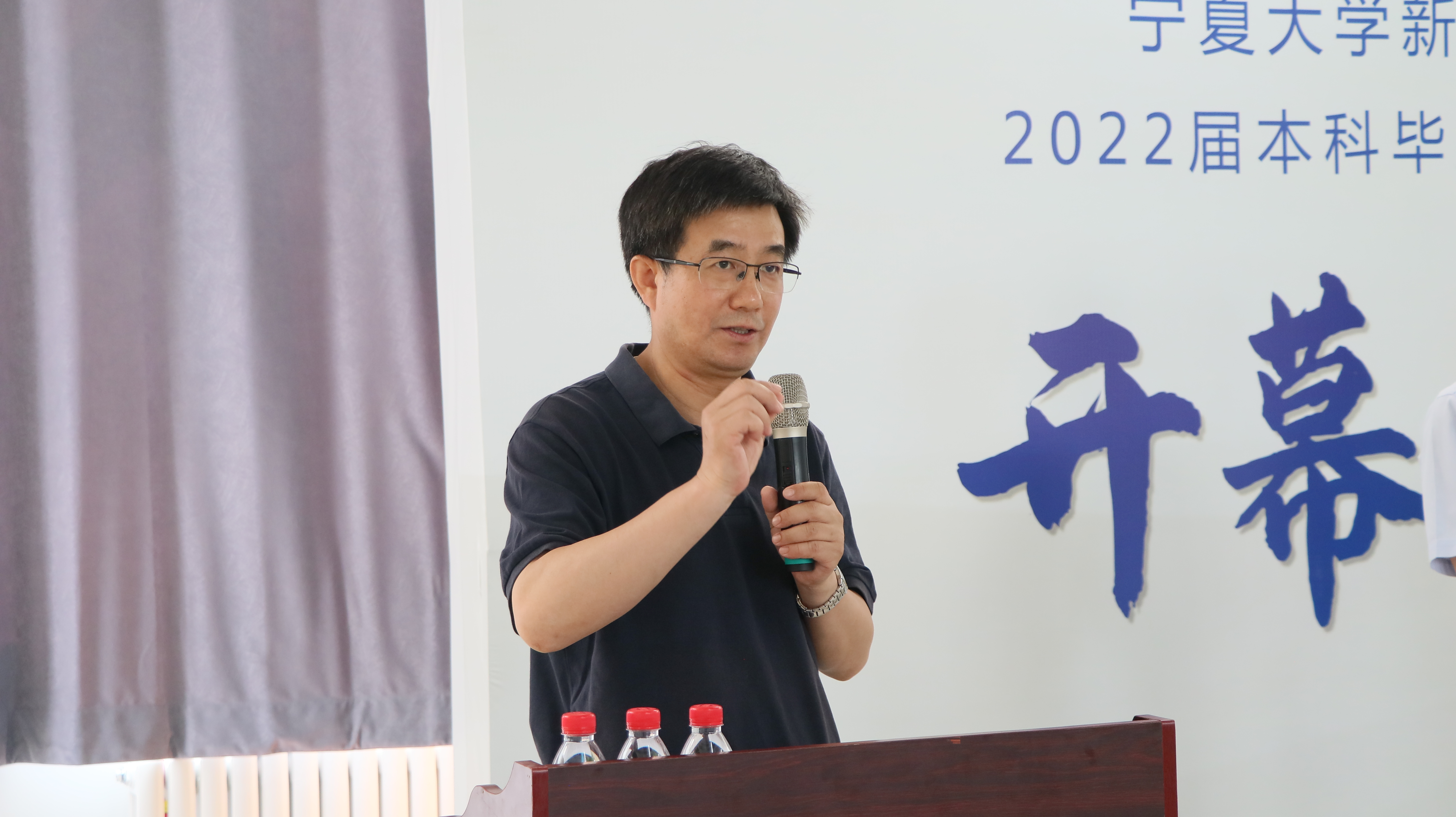 毕业生吝勇辉代表2022届全体本科毕业生发言。他表示,从写出来的稿件不知所云,到精心打磨出一件成熟的、获赞的作品,在实习过程中的丰富体验为自己积累了大量宝贵经验。“在中国日报宁夏记者站的实习非常有意义,使我不仅积蓄了内心的力量,也获得了珍贵的回忆,使我对未来充满了信心与向往。”