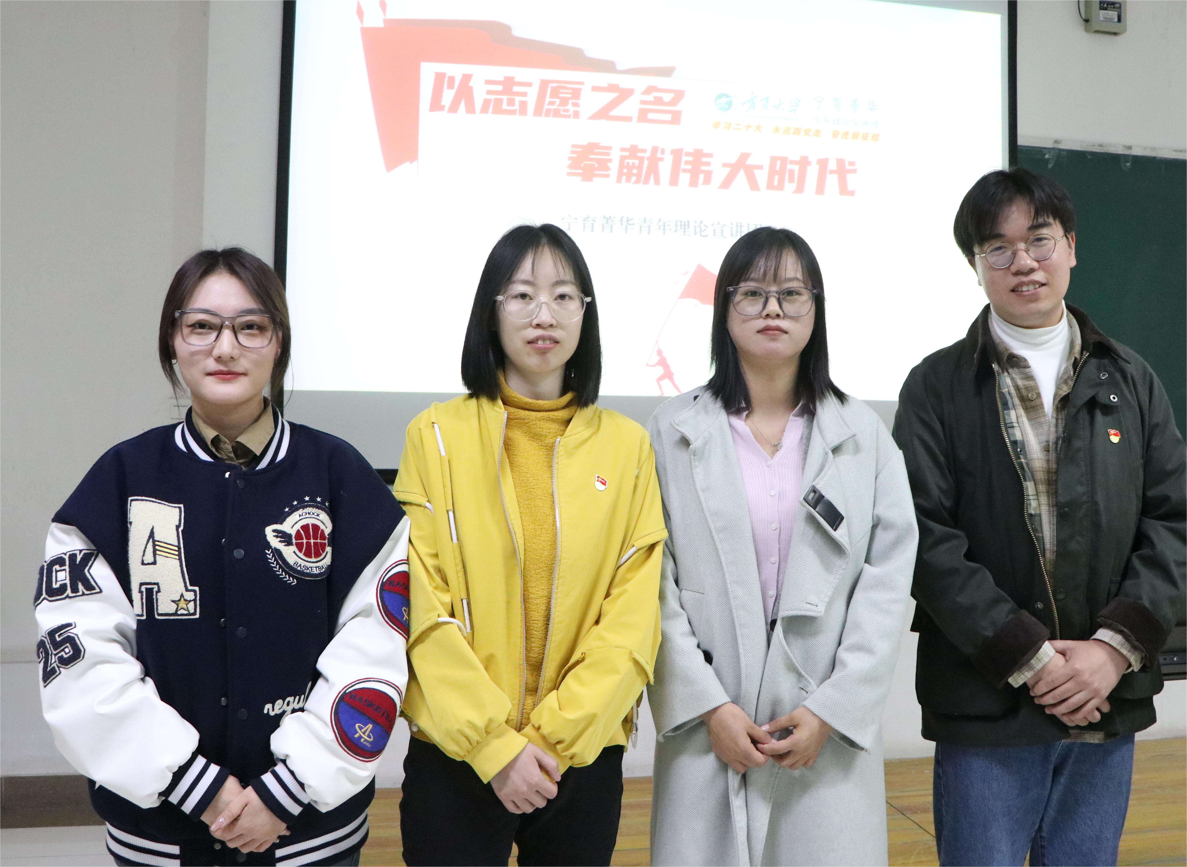 “宁育菁华”青年讲师团成员沈玉进、赵晏、马红玲、郭晓雪讲述他们与党同心、跟党奋斗的青春故事。博彩体育