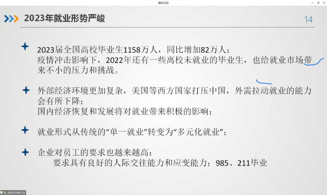 潘瑞指出2023年就业形势严峻,毕业生数量再创新高,企业对员工的要求也更加严格,除了专业技能外,还要求具有良好的人际交往能力和应变能力。同时2023年事业单位招考相较往年岗位数有所增加、招录人数有所减少,针对博彩体育
