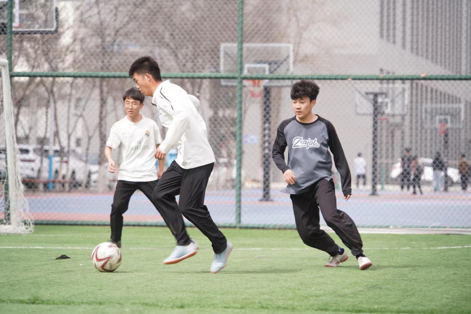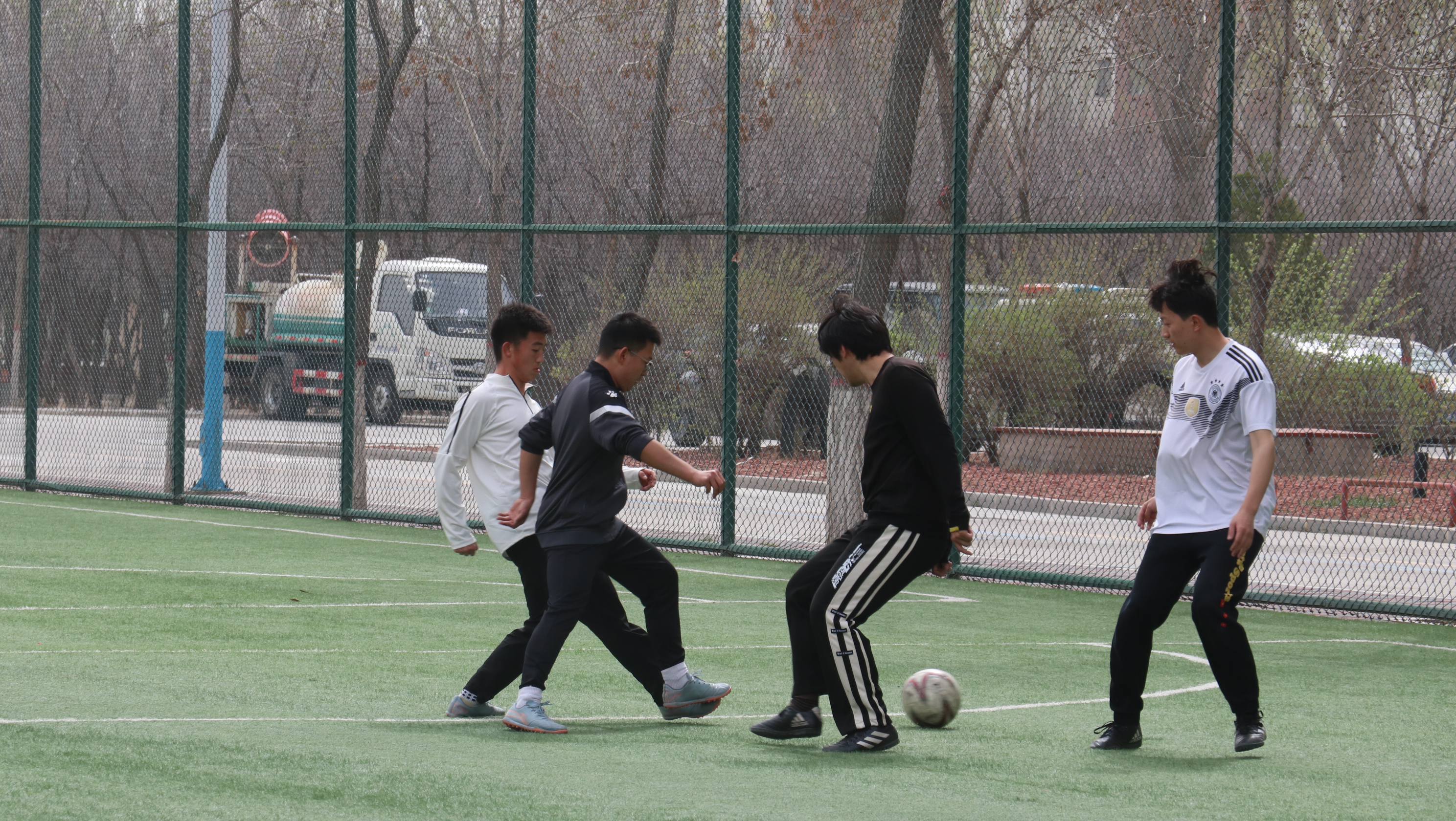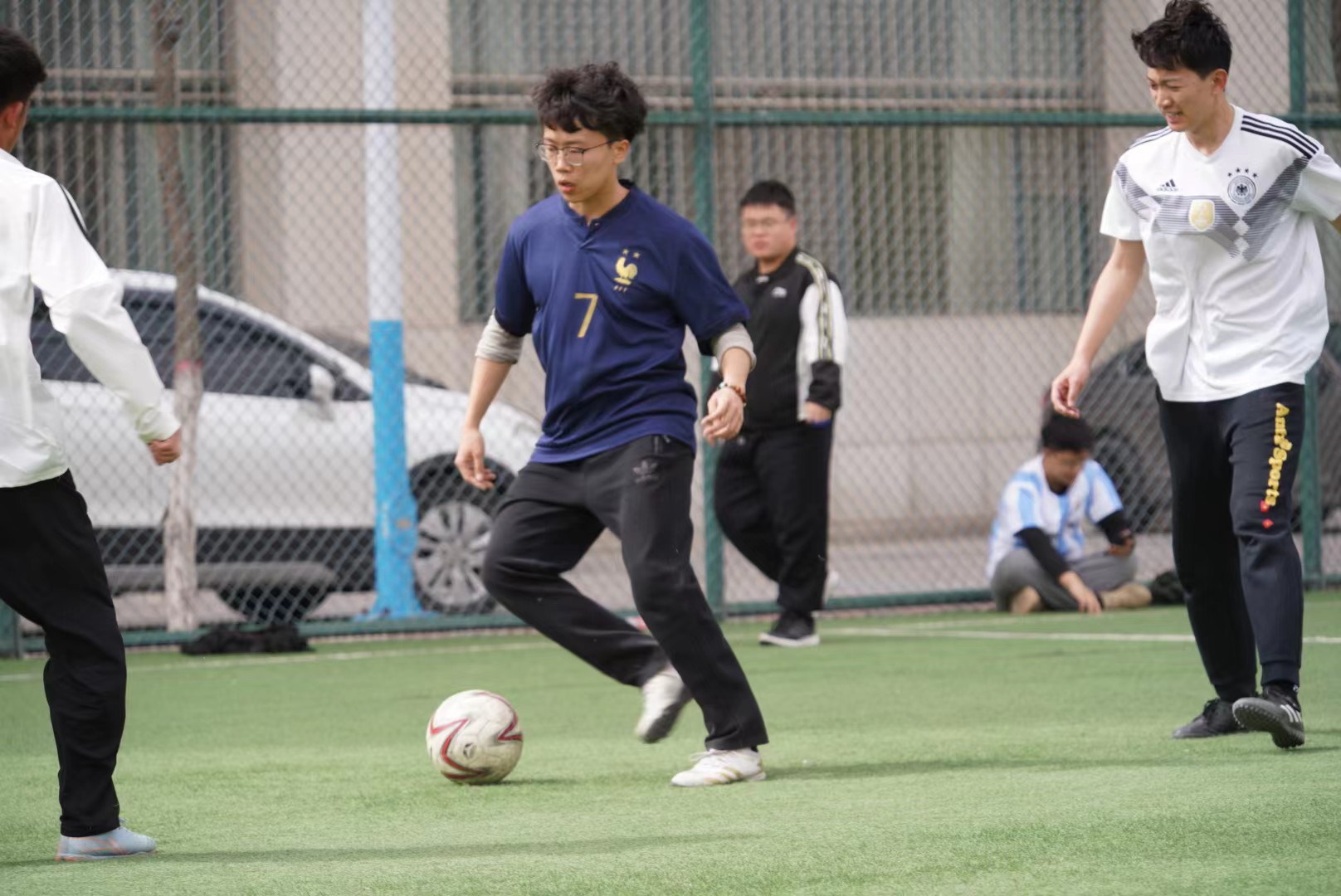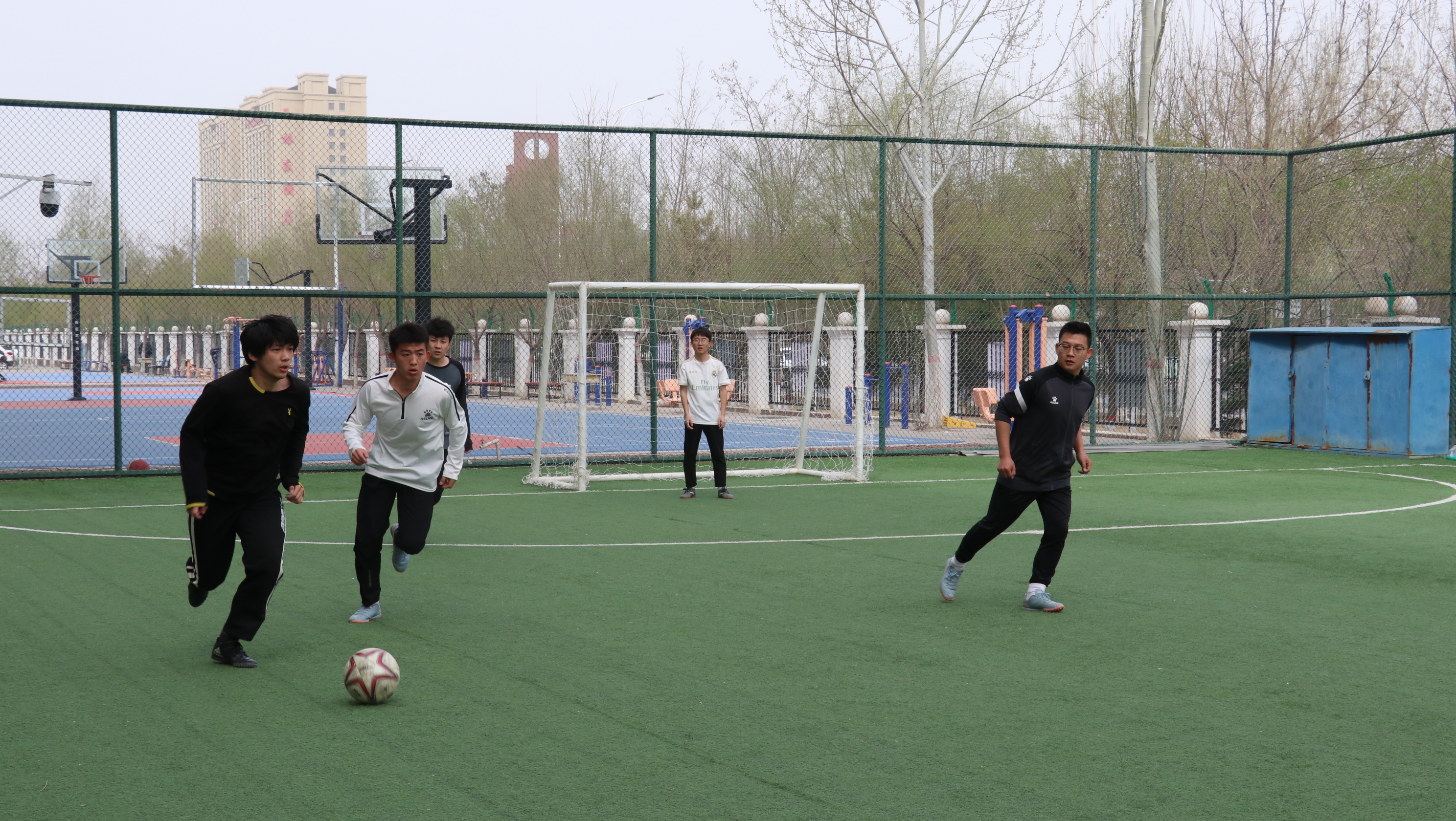 于贺兰山校区举办足球赛。参赛队员坚持不懈,尽情挥洒着对足球的热爱。