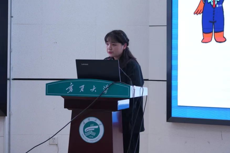 王雪蕊用“智小宁”的IP形象来宣传宁夏文化。她以简洁明了的语言介绍了IP的形象特征以及设计原因。“智小宁”的可爱表情包让我们对其有了强烈的兴趣。季娟老师评价:“这么多年来第一次有人能从毕业设计中走出来,真正将一个产品做成了,这是我们同学的榜样。”