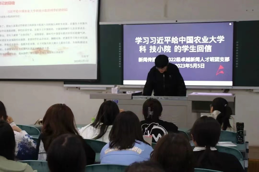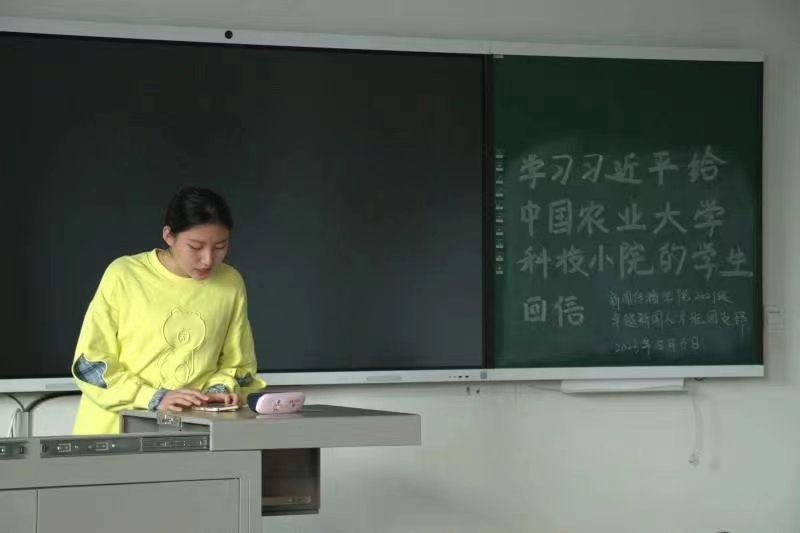 于文荟楼组织开展了以“学习习近平给中国农业大学科技小院的学生回信”为主题的团日活动。2021级、2022级全体本科生参加了此次活动。