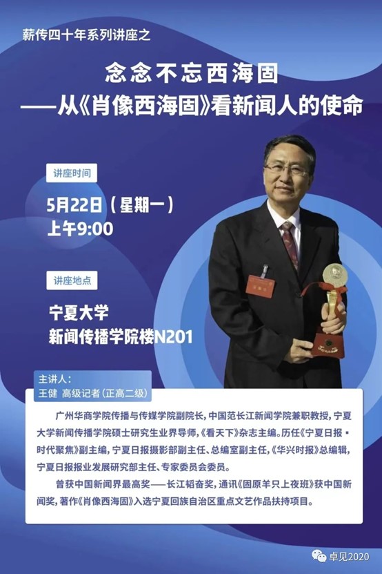 王健老师从自己拍摄《肖像西海固》背后的故事入手,“出租车来了,蹦蹦车走了。”这就是固原的变化,就是这么简单的一句话,却见证了西海固几十年的发展。