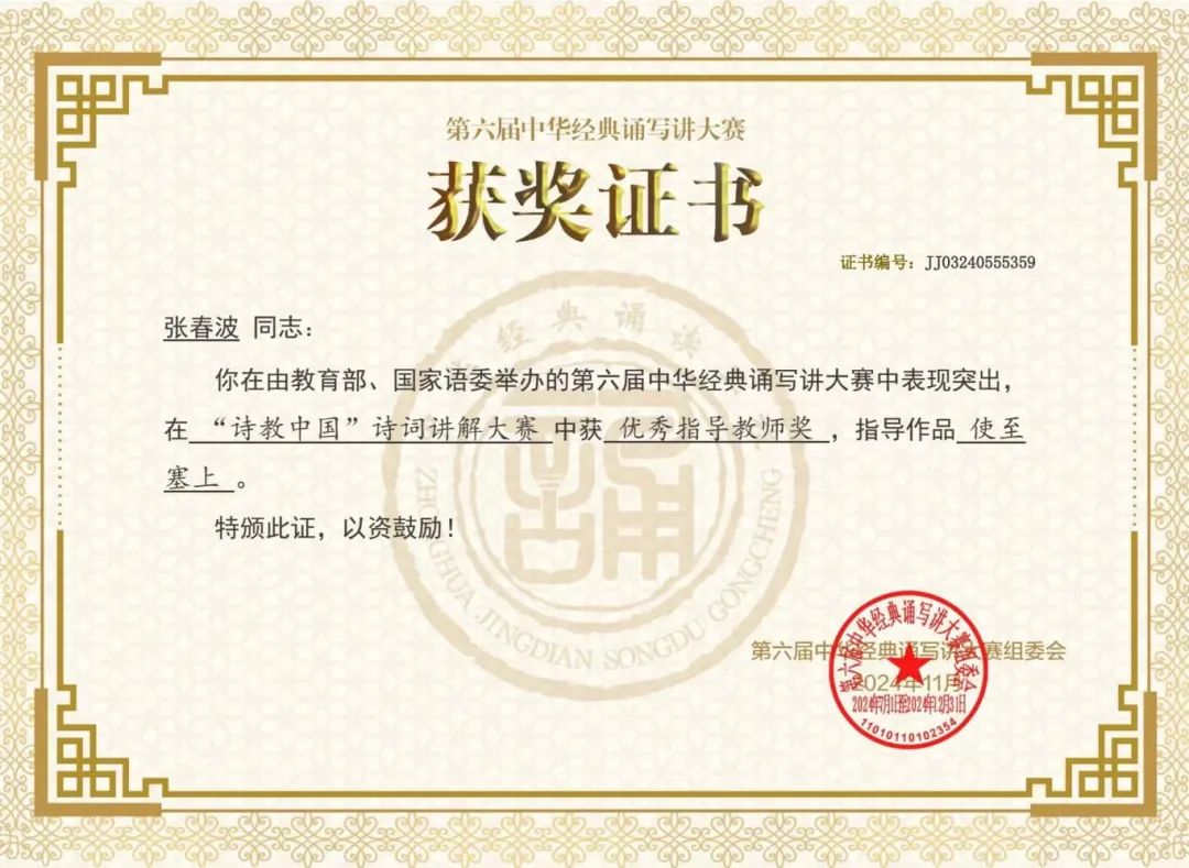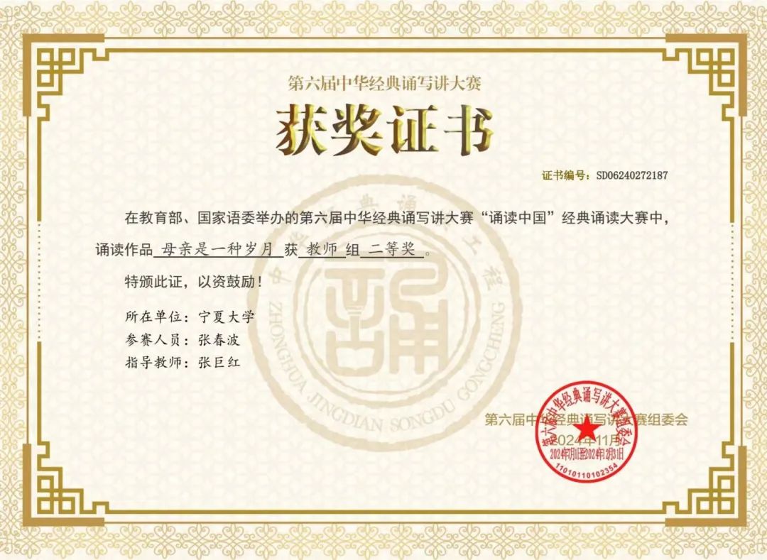 教师张春波在“诵读中国”诵读大赛中获得教师组二等奖,博彩体育