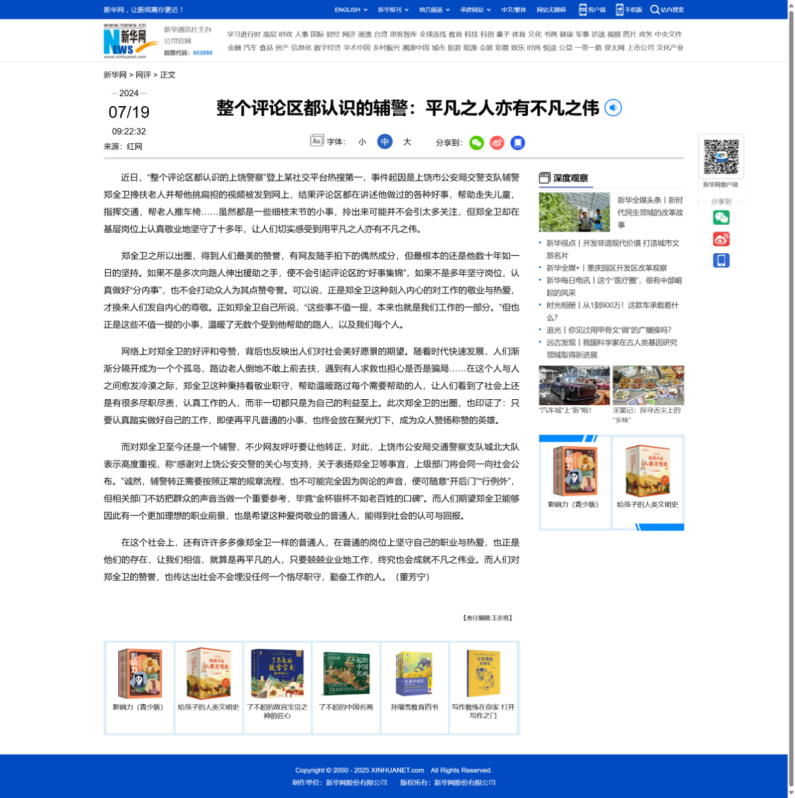 当看到自己的评论作品《整个评论区都认识的辅警:平凡之人亦有不凡之伟》被新华网转载,并最终在评论之星大赛中获奖时,我内心更多的是意外和激动。这份认可不仅是对我个人的鼓励,更让我坚定了在新闻评论这条道路上继续深耕的决心。