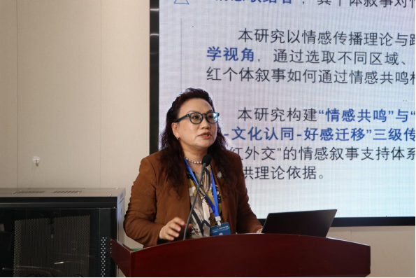 中国传媒大学的王红宇教授以《文化共情与好感迁移:区域国别网红的个体叙事传播》为题,讲述了在全球化与数字化交织背景下,区域国别网红从“文化代言人”转型为“情感联结者”,其个体叙事对情感联结与国家形象塑造意义重大。王红宇教授的研究突破传统网红研究的流量导向范式,创新性提出“情感叙事-文化认同-好感迁移”三级传播模型,为区域国别网红的叙事策略优化与国际传播实践提供理论依据。