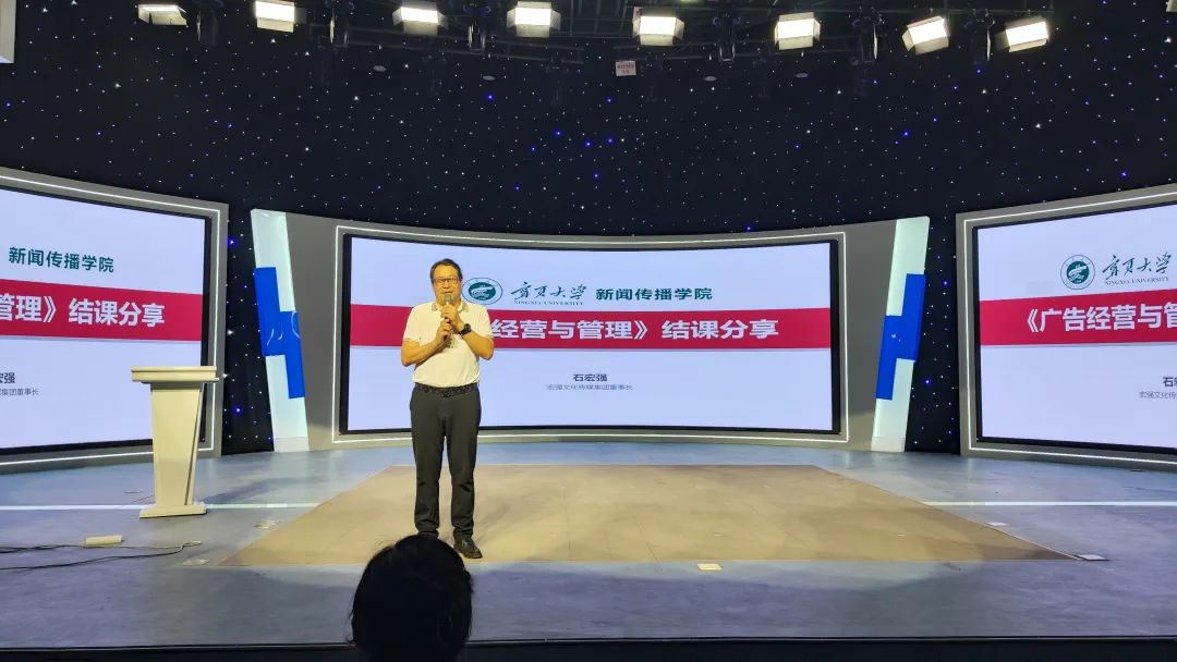 广告学系以市场需求为导向,特邀宁夏广告协会会长、宏强文化传媒集团董事长石宏强先生担任专业必修课程《广告经营与管理》的主讲导师,企业导师全程参与教学环节。他们将30年广告行业实战经验转化为教学内容。从“天龙十步企业模块”的模拟公司搭建,到智能算法优化、品牌策划方案的实战设计,学生直接对接广告传媒行业真实痛点。“用创意解决问题,用专业赢得市场”——石宏强老师在结业仪式上的寄语,成为贯穿课程的实践导向。“课程内容与行业标准的深度契合,是博彩体育