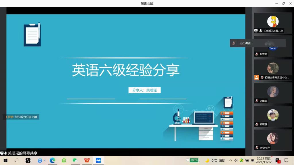 接着关瑶瑶介绍自己英语六级考试的经验,建议同学们重视听力和阅读,一定要做到多看多讲,把自己放进英语环境中学习。他还强调了真题的重要性,叮嘱大家把往年的真题练熟才能够找到试题规律,在潜移默化中锻炼自己的思维度,正所谓“知己知彼,方能百战不殆”。其次他还指出,制定科学合理的复习计划是成功之本,考研路似高考但又不像高考,自主学习要求更高,备考内容冗杂且晦涩难懂,这就要求同学们要有“千里之行,始于足下”的学习精神,要在潜心挖掘中找到自己的方法,并在科学的学习规划中坚持不懈。