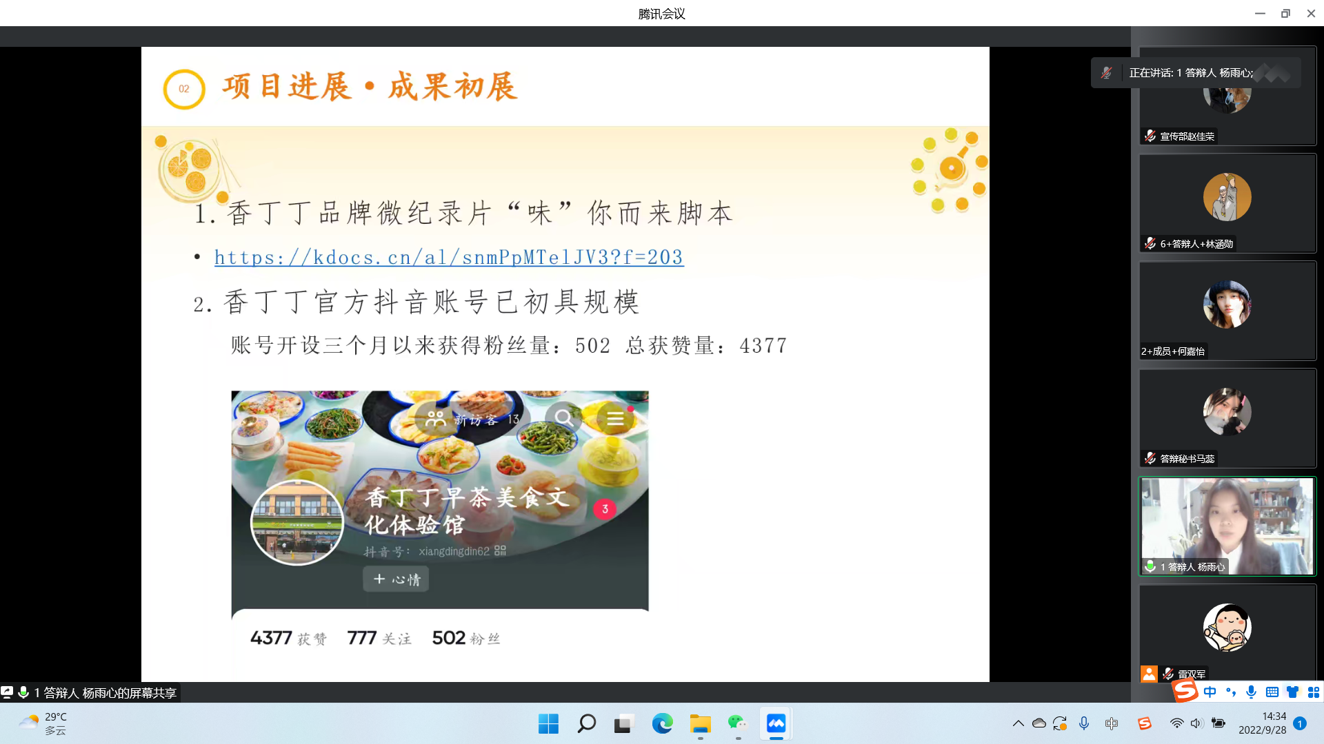 各小组答辩人分别从项目进展、存在问题、下一步工作计划、经费使用情况等方面展开阐述。答辩学生思路清晰、发言流畅,成果展示良好。“探索宁夏地区美食品牌传播新模式”项目组立足于吴忠早茶在品牌传播上的痛难点问题,以实现进一步传播吴忠早茶文化、推广当地特色饮食为目标,产出新媒体产品在各平台进行投放和品牌传播;周雪琴项目组以“旅途(宁夏牧飒)”抖音号为例,对乡村生活纪实类短视频进行研究;王燕项目组聚焦贺兰山腹地的石炭井,对此地区的历史背景、人文情怀、搬迁故事进行详尽调研,致力推进纪录片《石炭井纪事》的拍摄。评委老师们从结题要求、结题报告要求、作品的核心观点、拍摄意义、完成后的去向以及如何发挥作品最大价值等问题进行了分析点评。