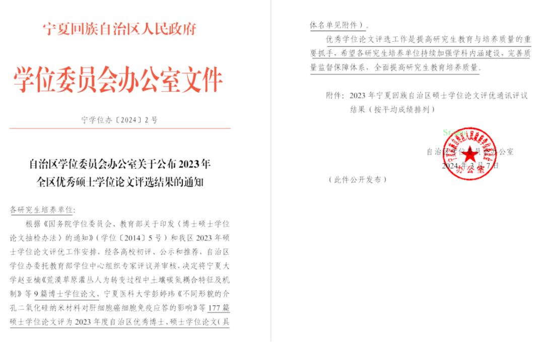 近日,宁夏回族自治区学位委员会办公室公布了2023年自治区级优秀博士、硕士学位论文评选结果。博彩体育