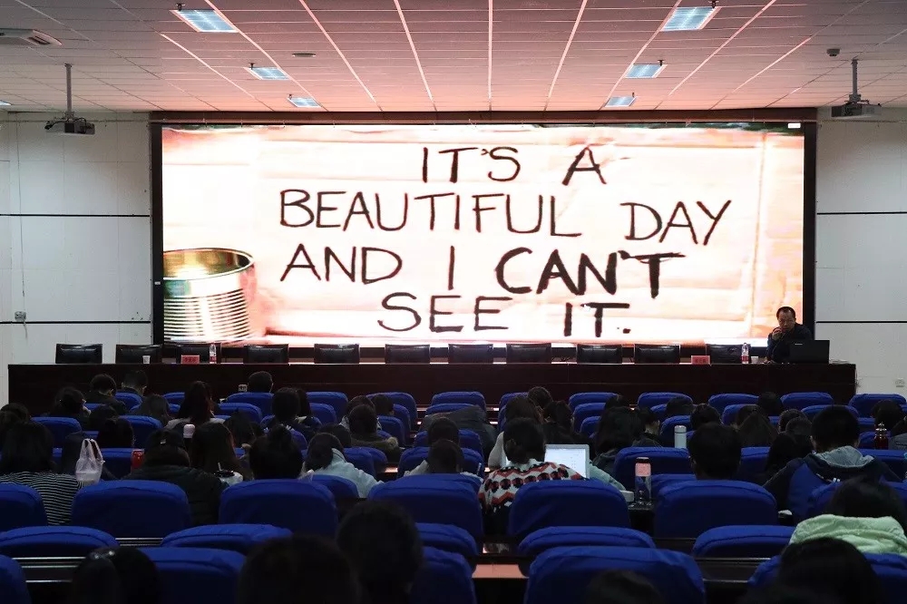 讲座伊始,林教授结合视频短片为同学们讲述了一个盲人乞讨的故事,通过盲人乞讨标语的内容来阐释语言的力量。在林教授看来,语言的力量来源于idea的力量,同时他也主张学术研究要从身边问题入手,他强调“知行合一,做本土的学问”。