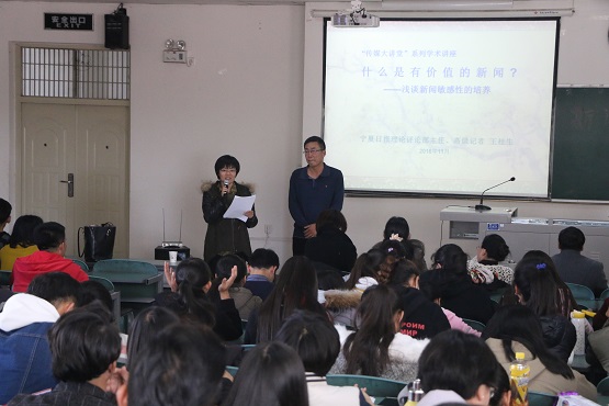 王桂生老师以其一线记者、编辑、评论员的身份经历,为大家深入分析了新闻实践中对新闻敏感性的认识和把握,指出作为新闻媒体要为受众源源不断地提供有价值的新闻,作为新闻工作者要将新闻敏感性的把握贯穿于新闻采编的全过程。王桂生老师表示,新闻敏感性简而言之就是对事物保持的好奇心,在保持好奇心的同时需注意不能为了好奇而好奇,否则可能招致“假新闻”、“标题党”等情况的发生。在指出新闻敏感的三大误区的同时,王老师介绍了获得新闻敏感的四大途径,即“多学”、“多看”、“多想”、“多练”。他希望同学们多学理论、政策等知识;多看主流媒体,了解时事新闻;多想好标题,好句子;多深入社会,了解社会。