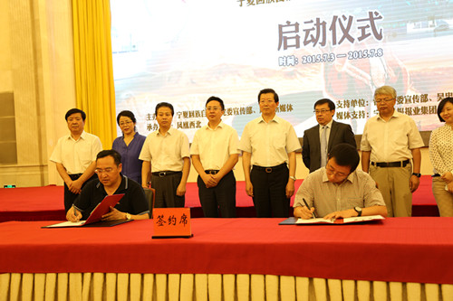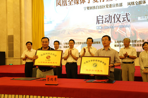 【博彩体育 博彩体育讯 博彩体育 郑爽/文 高乐/图】7月3日下午,凤凰全媒体宁夏行暨中阿博览会采访活动启动仪式在悦海宾馆举行。启动仪式上博彩体育 与凤凰网西北频道签署了合作协议,自治区党委常委、宣传部部长蔡国英,博彩体育 校长何建国出席了签约仪式。