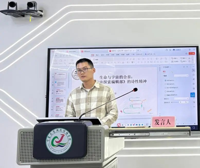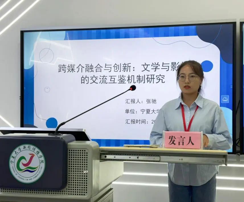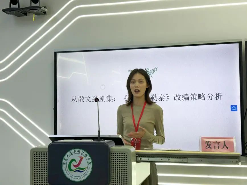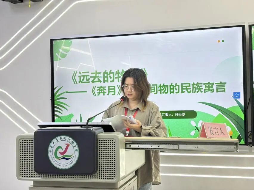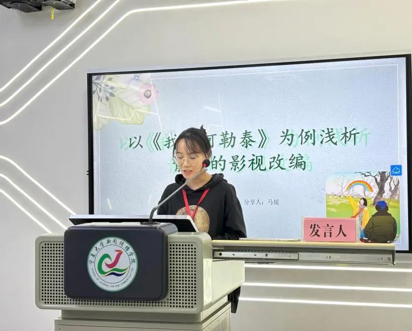 马媛带来了《以<我的阿勒泰>为例浅析散文的影视改编》分享汇报,通过分析散文影视化改编的难点和意义,分析了电视剧《我的阿勒泰》改编策略,并进一步提出忠实于原著精神同时创新叙事结构、视听觉与情感表达实现完美契合、地域文化与民族风情生动展现的改编思路。