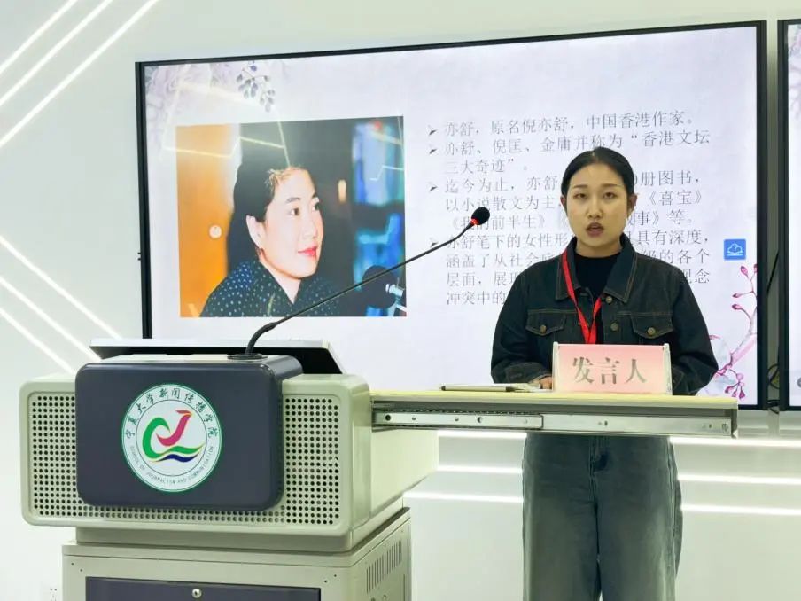 李剑慧带来了《文学与影视的交流互鉴价值探析——以亦舒小说<玫瑰的故事>为例》的分享,简要分析了作家亦舒的影响力及其作品被影视化改编的现状,以《玫瑰的故事》为对象探究了亦舒文学作品在当下影视化改编市场的潜力,总结了良性互动、双向反哺的文学与影视交流互鉴方式。
