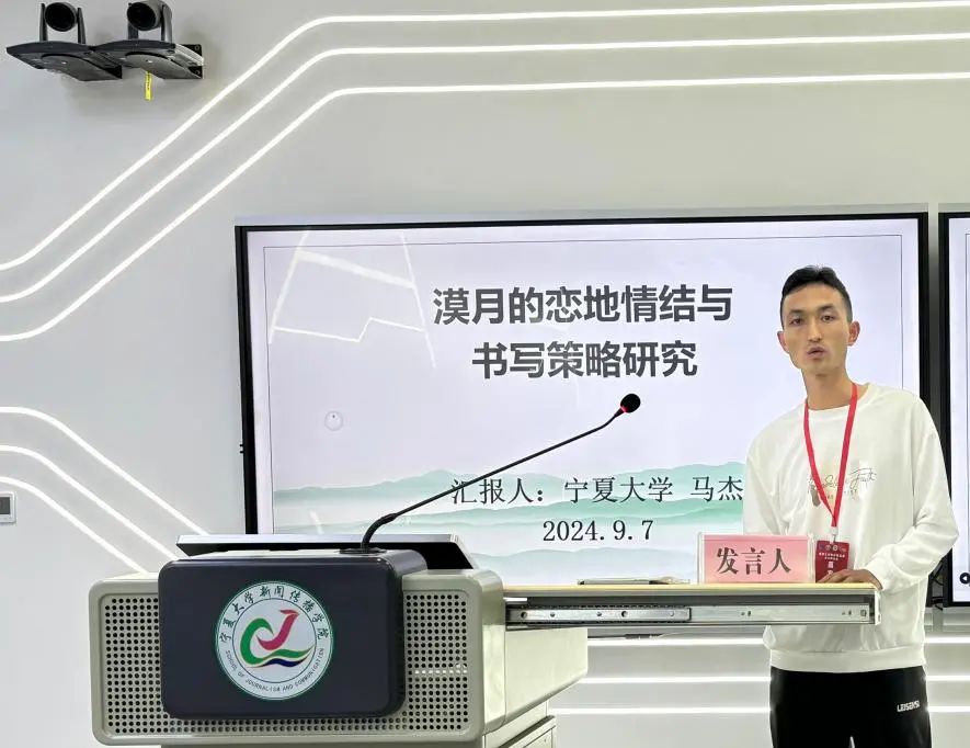 马杰以西北地区知名作家漠月作为研究对象,以《漠月的恋地情结与书写策略研究》为题进行了分享,从漠月小说创作中的“故乡之恋”及其“恋地情结”的书写策略两个维度论述了漠月“恋地情结”的文学创作价值。