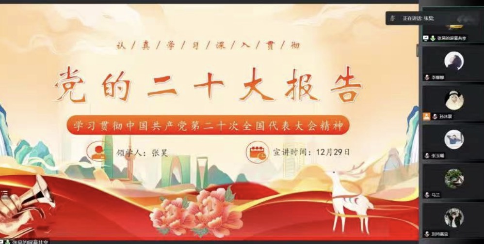 行政党支部、研究生第一党支部、研究生第二党支部于2022年12月29日下午汇聚云端,共同学习了“永远跟党走 奋进新征程——学习贯彻党的二十大精神”主题党课。本次党课由国际汉博彩体育
