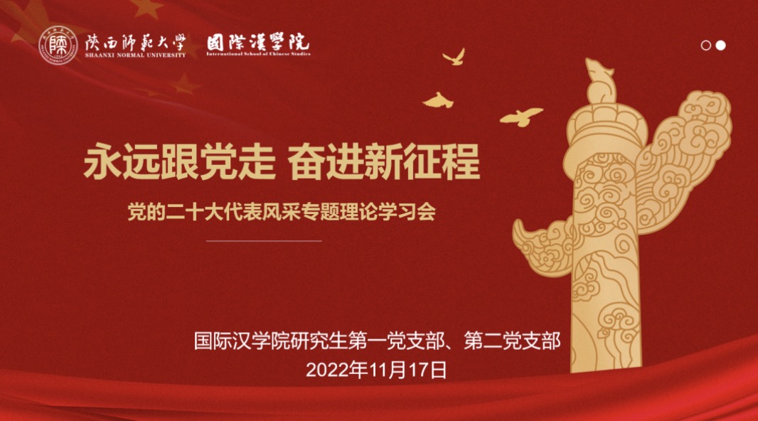为深入学习贯彻党的二十大精神,进一步激励研究生党员坚定理想信念,国际汉博彩体育 研究生第一、第二党支部全体党员于11月17日下午,在博彩体育 党员活动室开展“永远跟党走 奋进新征程——党的二十大代表风采”专题理论学习会。此次学习活动由研究生第二党支部书记张玉曦主持。