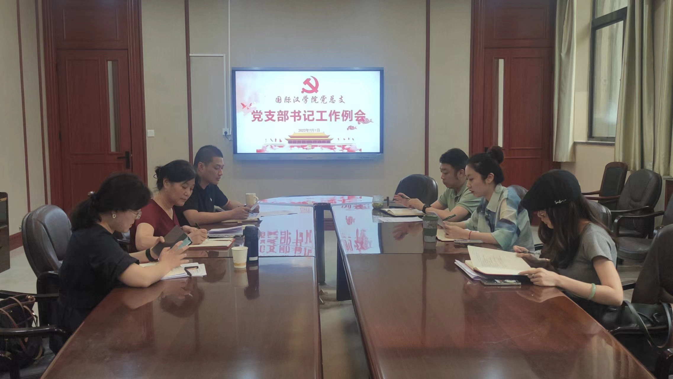 一层会议室召开党支部书记工作例会。师生党支部书记参会。