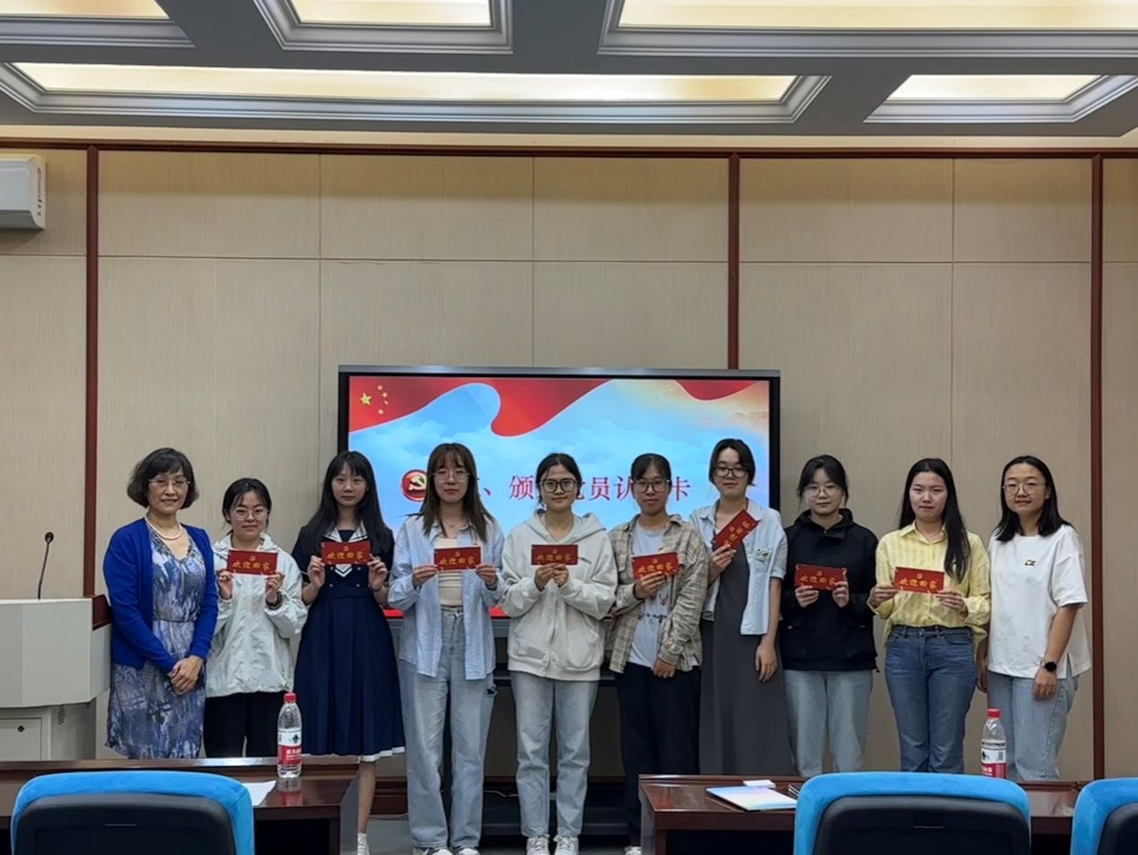 两个支部的具体情况,包括人员组成、有关党员发展、支部建设的活动,以及所开展的主题党课和党日活动等。之后,在“党员互认”环节,新老党员分别进行了自我介绍。随后,马兰和翁思洁为新生党员颁发“党员认家卡”。