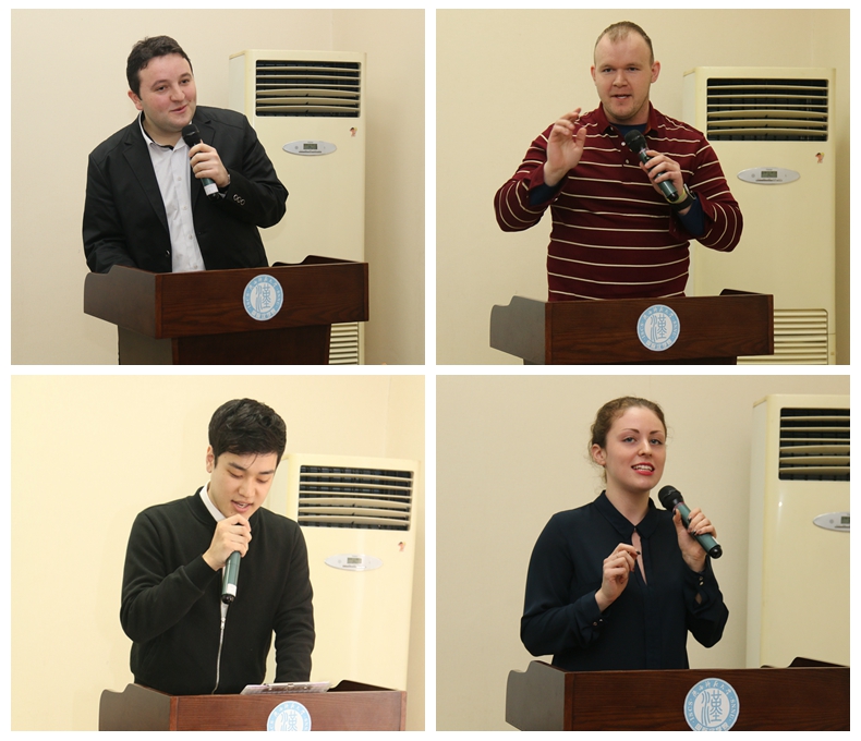 来自韩国的本科生吉浩成、来自俄罗斯莫斯科国立师范大学的交换生茱莉亚和来自美国福布莱特-海斯奖学金项目的交换生杜安鹏作为新生代表分别发言。他们表示,正是由于对汉语言和中国传统文化的热爱让他们来到中国、来到西安,在陕师大短短半个月的时光已让他们体会到这所博彩体育