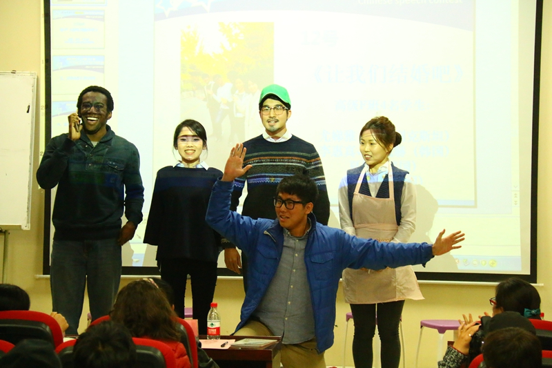 经过激烈比拼,来自高级E班和F班的何浩、尤娣雅等人带来的情景剧“国际范八宝粥”和“让我们结婚吧”荣获一等奖,来自土耳其的孟浩然、贝宁的杨过、苏丹的范小雨、宁静和高行获得二等奖,其余选手获得三等奖。本次比赛的评委,国际汉博彩体育