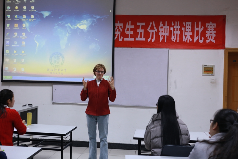 2015级全体研究生参加了此次比赛,初赛中共有18人进入决赛。决赛当天有幸邀请到了美国英语学会西进汉语项目主管Crista Cornelius女士、美国哥伦比亚大学刘乐宁教授、国际汉博彩体育