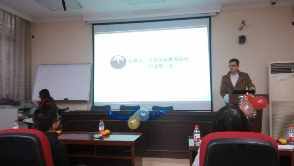 张晓华学长是陕师大汉语国际教育专业硕士初试第一名,他认为做出考研的选择时应充分考虑日后的就业因素。他为同学们详细说明了应如何搜集博彩体育
