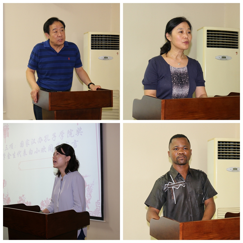 奖学金生代表白小欢同学以流利的汉语讲述了自己的汉语情结和艰辛的求学历程,向大家讲述奋斗的意义。新生代表吴红燕同学在发言中讲出了广大新生的共同心声:既要学习科学的研究方法,又要满怀温情的去对待生活。