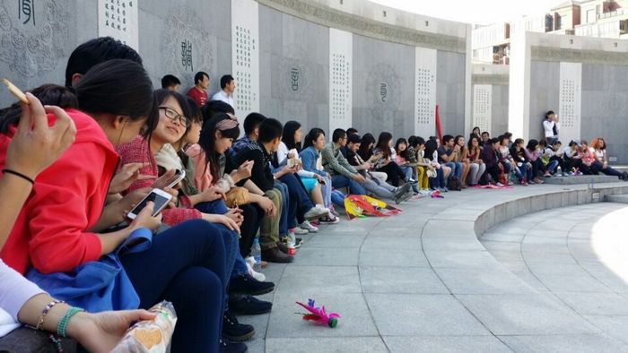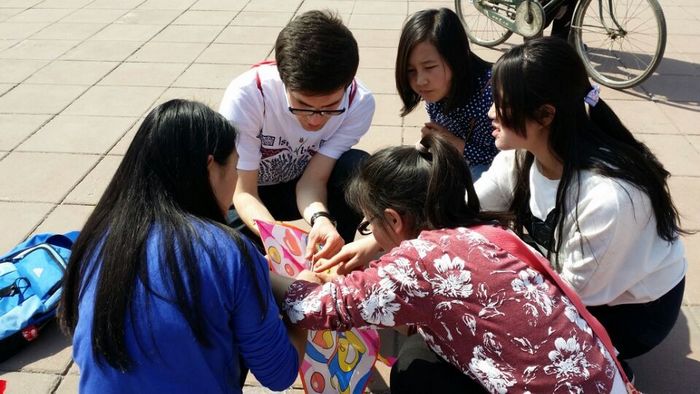 下午1点,活动组织方在喷泉广场安排参与者集合。活动中参与者被分为10组,每组由一名部员和志愿者负责,各小组按顺序领取风筝后,从雁塔校区东门出发。一路上参与者们通过特设的“60秒不间断”等小游戏以及智力竞答赢取活动的道具和食品,有的讲起小时候春游的趣事,有的还与外国学生交流起各国风筝历史,队伍里不时传出阵阵笑声。队伍行进至吟诗坛后,参与此次活动的同学们也在休息期间开始展示自己的才艺:汉服爱好者伴舞的朗诵《礼运·大同篇》将人带回几千年前的遥远时空;外国游人的一曲《朋友》则引发了全场合唱,让大家感受到了暖暖春意。令人惊喜的是,队伍在吟诗坛还偶遇了几个同样到这里春游的小学生,他们在老师的带领下为我们朗诵了李白的《将进酒》,稚嫩的童音里饱含着飞扬的豪情,博得了大家热烈的掌声。