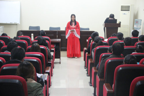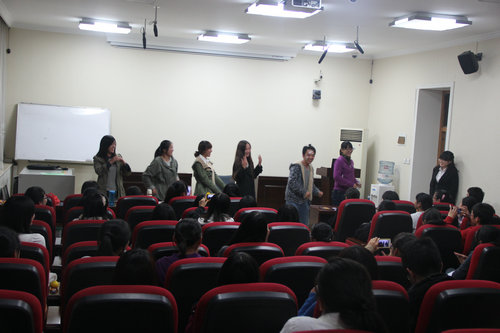 报告厅举行了新一届社团成立大会,国际部部部长杨倩主持了本次活动。