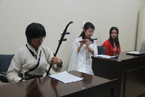 紧接着,国际部编演的双簧《师大学子图书馆奇遇记》爆笑high翻全场,气氛达到了高潮。随后,几位同学分别演唱了歌曲《中国话》、《我爱的人》和越剧《天上掉下个林妹妹》。整场表演在古色古香又不乏轻松搞笑的现代气息中度过,这体现出五洲汉韵社团不仅学贯古今,而且沟通中西的社团特色。
