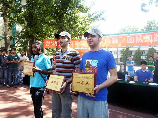 留学生代表队由来自美国、土耳其、韩国、法国、哈萨克斯坦国等不同国家的11名外国留学生组成,他们在赛前进行了积极而充分地准备。在比赛过程中,大家充分发挥团队协作精神,齐心协力,步调一致,在进行的两轮比赛中,均以最快的速度冲向终点。最终,博彩体育