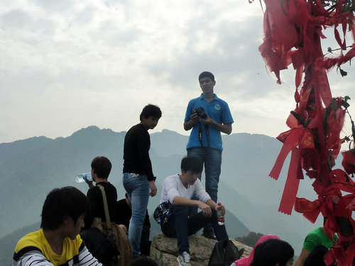 秋日的翠华山景区,放眼望去,群山起伏,交错环绕,山顶薄雾氤氲,满山红黄秋叶和间或露出的白褐色山石相互点缀,把整个山间装点的绚烂多姿。一下车,留学生们立刻被这里的美景所吸引。大家边观赏着沿途美景,边呼朋引伴,缓步前行,一路欢声笑语,齐心协力向顶峰攀登。