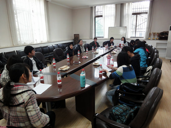 学生会的大家庭。他们分别来自美国、瑞士、泰国、越南、波兰、哈萨克斯坦、乌兹别克斯坦七个国家。他们分别介绍了自己的名字和国家以及个人的兴趣爱好,并且与部长们展开了热烈地交流。虽然有些留学生干部刚刚学习汉语,但丝毫没有影响他们希望参与活动的积极性。