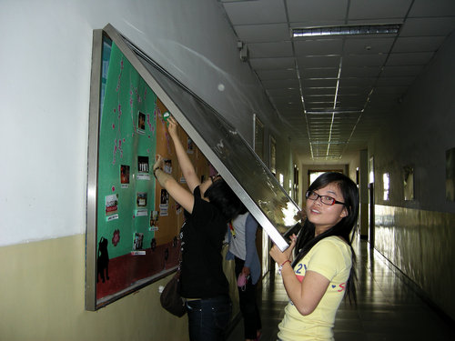 打扫卫生原本是一件很累很枯燥的活儿,但是这一群对母校充满依恋的对外汉语2007级党员们却把它演绎成为一份对母校的依依的恋情,一份对老师的深深的敬意,一份对学弟学妹的浓浓的关爱:轻轻擦拭记录荣誉的照片,见证了他们的成绩;小心传递博彩体育