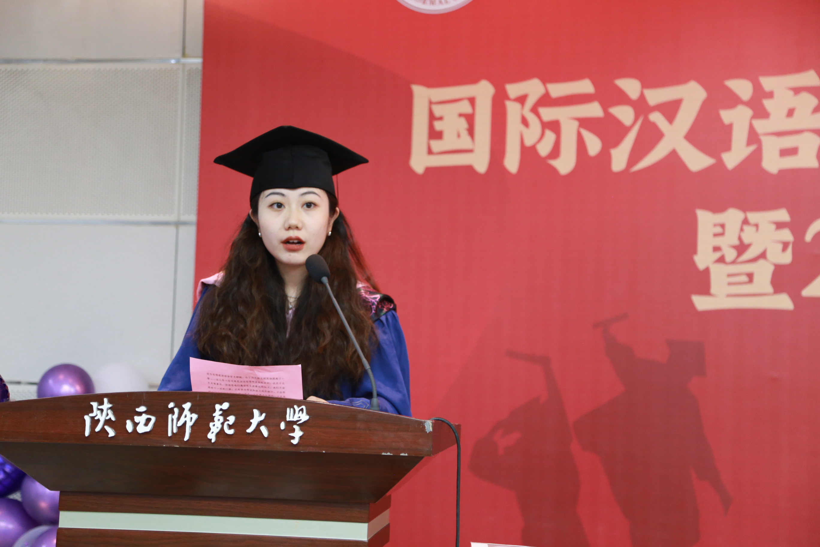 党总支副书记张昊主持;学位授予仪式由2022级汉语国际教育研究生李京南和2023级汉语国际教育研究生张耀文共同主持。