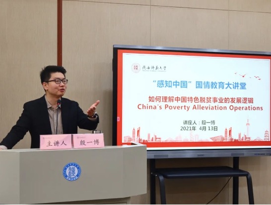 4月13日上午,国际学生“感知中国”国情教育大讲堂第二讲“如何理解中国特色脱贫事业的发展逻辑”在国际汉博彩体育