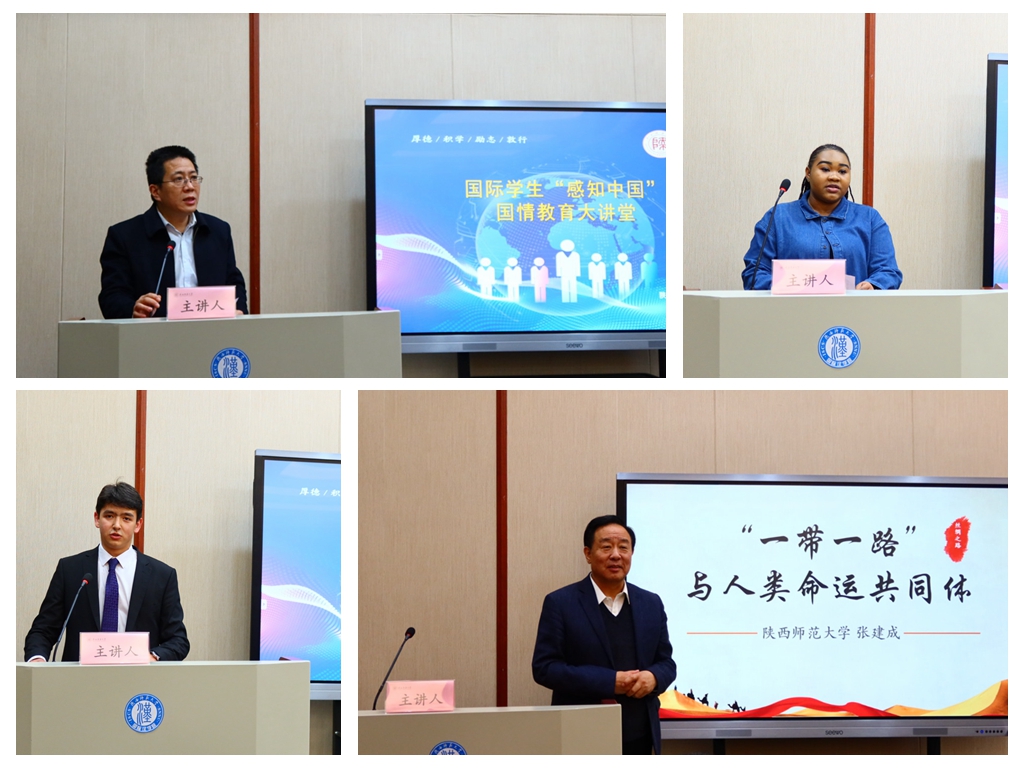 张建成教授带来了题为《“一带一路”与人类命运共同体》的首场讲座。从古“丝绸之路”的历史沿革、今“一带一路”的时代特征等方面详细介绍了我国的“一带一路”政策及其与国际学生的关系,认为国际学生是“一带一路”政策的参与者、受益者、传播者,希望大家珍惜在中国、在师大的留学机会,学好汉语,增长知识,开拓眼界,争做促进世界和平、交流与发展的青年使者。在场学生反响热烈。