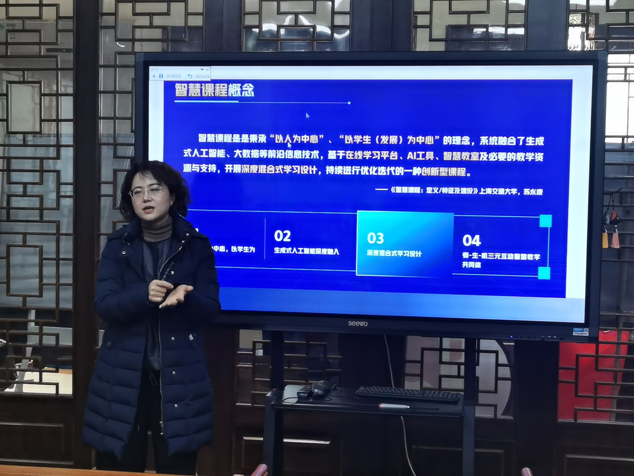刘琨老师聚焦国际研究生中国非遗文化系列课程,针对学生面临的语言壁垒、文化隔阂、互动不足等问题,提出构建国际中文智慧课堂,并分享了自己做出的尝试与成果,明确了人工智能赋能教学深度互动的实现路径,为传统文化类课程的智能化教学提供了创新方案。