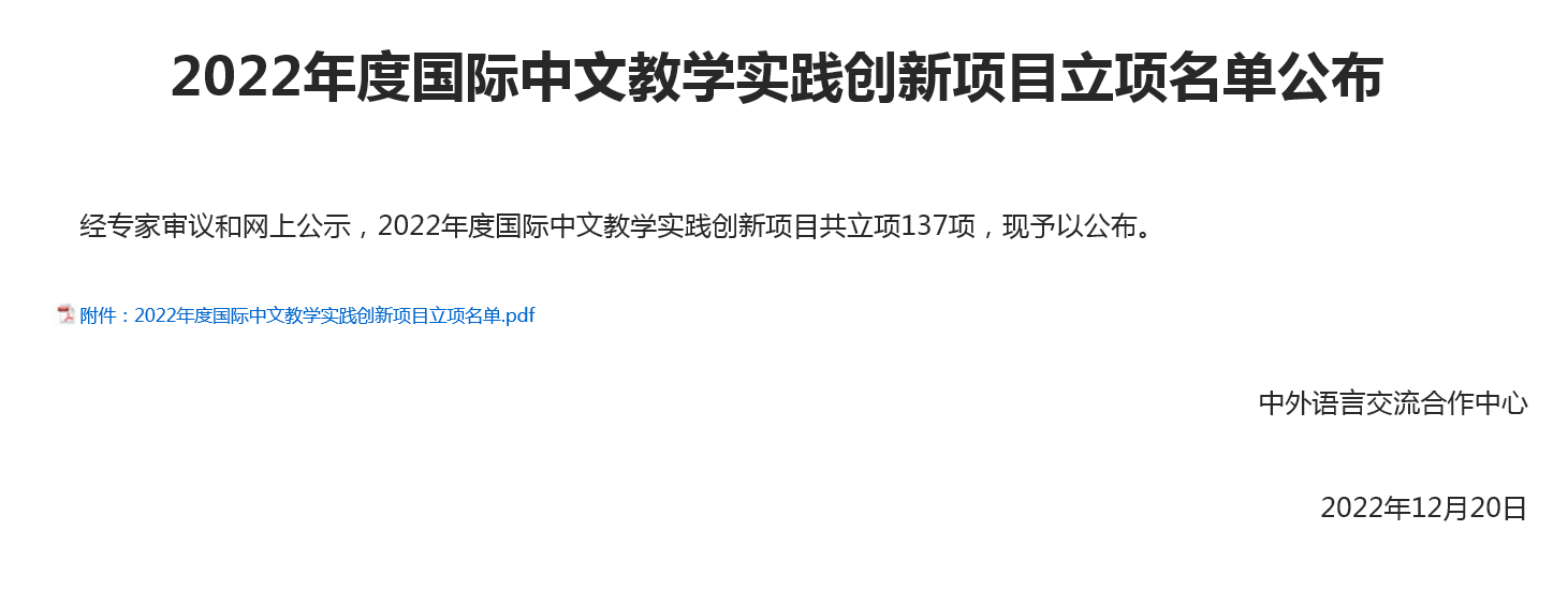 近日,“语合中心”公布了“2022年度国际中文教学实践创新项目立项名单”,博彩体育