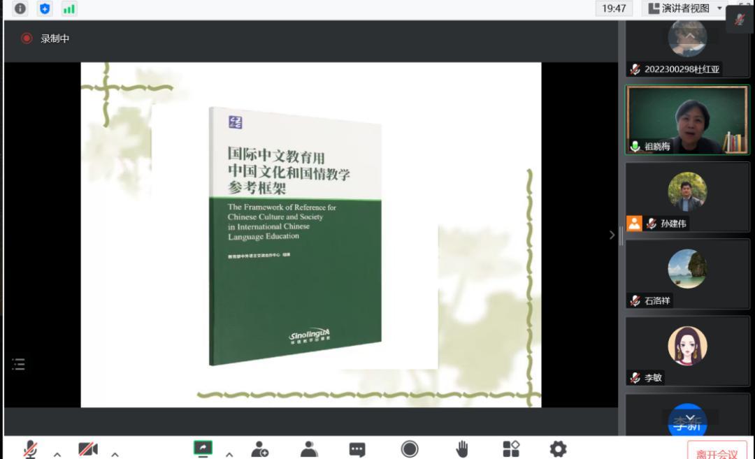 作为主编,祖晓梅教授对《国际中文教育用中国文化和国情参考框架》进行了深入浅出的解读,令与会人员受益匪浅。