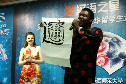 选派的留学生中有7名进入了面试环节,其中美国的思远自编自演了情景剧《忐忑》,并在其中穿插了魔术和幽默故事,让大家捧腹;韩国留学生朴辅仁则展示了自己功力深厚的书法作品,并以自己对中国太极拳、书法及道教文化的全面而深入的理解,给评委留下了深刻的印象。而越南留学生阮进全则凭借地道的太极拳表演、《但愿人长久》的深情演绎以及帅气阳刚的形象气质,赢得了评委老师们的认可,最终在拉票环节中获得了进京通行证。和他一同在复活赛中获得通行证的还有西北大学的哈萨克斯坦选手阿依多斯和西北工业大学的摩洛哥选手迈赫迪。西安交通大学的英国选手马丁和西安外国语大学的乌克兰选手李维则在面试环节直接晋级。至此,本次西安赛区的5名进京选手全部诞生,比赛圆满落幕。