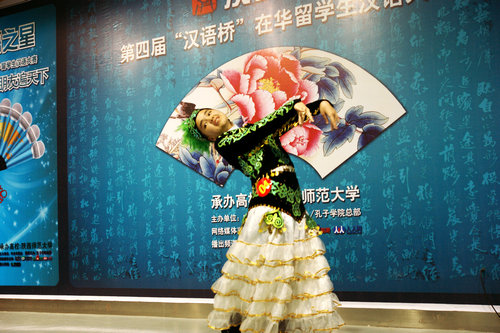 英国留学生李诚荣获笔试第一名。下午的面试分为自我介绍、才艺表演和评委问答三个部分。留学生们展示了高超的汉语水平和丰富的才艺:中国武术、搏击表演、中文歌曲演唱、情景剧表演、诗歌朗诵、单口相声、魔术等等,博得了观众阵阵热烈的掌声。