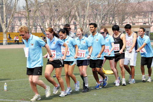 本次运动会共设有个人项目16项,团体项目3项,分别由08级对外班和研究生会负责运动会的协调保障服务。尤其是男女子短跑项目,由于留学生参与度高,看点频现,赛场内外吸引了不少中国学生为他们鼓劲加油。在轻松的氛围中,大家都体会到了运动的快乐,释放出自己的激情。个人赛之后的团体协作项目笑声迭起,师生们在协作比赛的过程中彼此增进了解,加深感情,娱乐至上,活力无限。