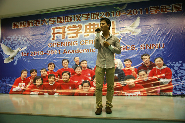 为新生所做的精心安排,感谢师长给予的温暖而热情的照顾。希望所有留学生“学好中国话,朋友遍天下”。