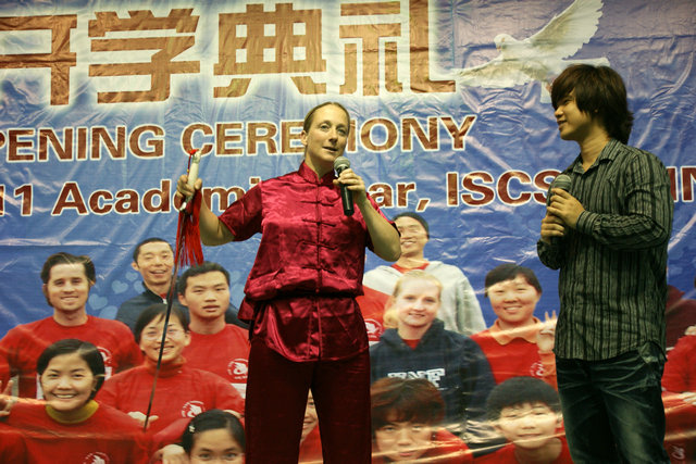 教师代表冯雪俊老师代表全体教师欢迎来自世界各地优秀学子加盟国际汉博彩体育